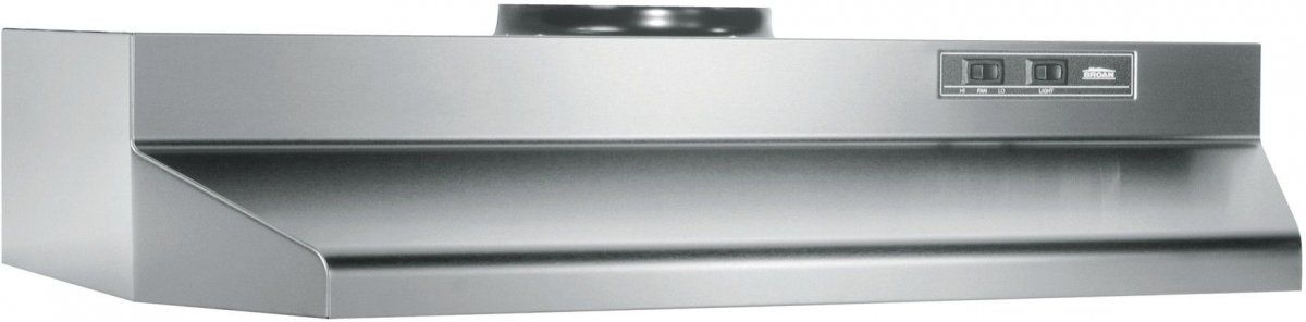 The Broan® Under Cabinet Range Hood with Light and Easy Install System offers quality construction and ease of installation with the EZ1 one person installation system, making it a popular choice in vertically-ducted hoods. This range hood is equipped with a 190 CFM blower to tackle heavy venting jobs. A built-in rocker switch-controlled light supports a 75-watt incandescent bulb (bulb not included). Mitered sides and a hemmed bottom join forces to help ensure safety and provide a decor-complementary look. A damper can be purchased separately.Read More