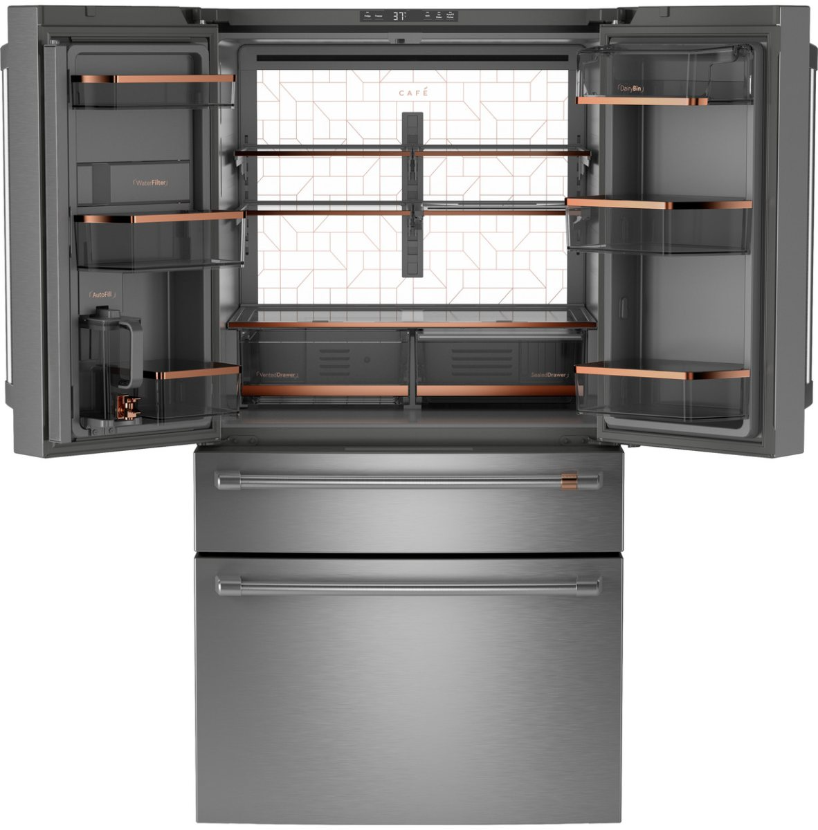Curated to fit your needs, TwinChill™ Dual Evaporators feature refrigerator climate zones that keep all food items perfectly fresh in both the fresh and freezer sections. This stylish refrigerator convertible drawer with glass dividers offers a clean, aesthetic storage solution that allows for simplified organization.