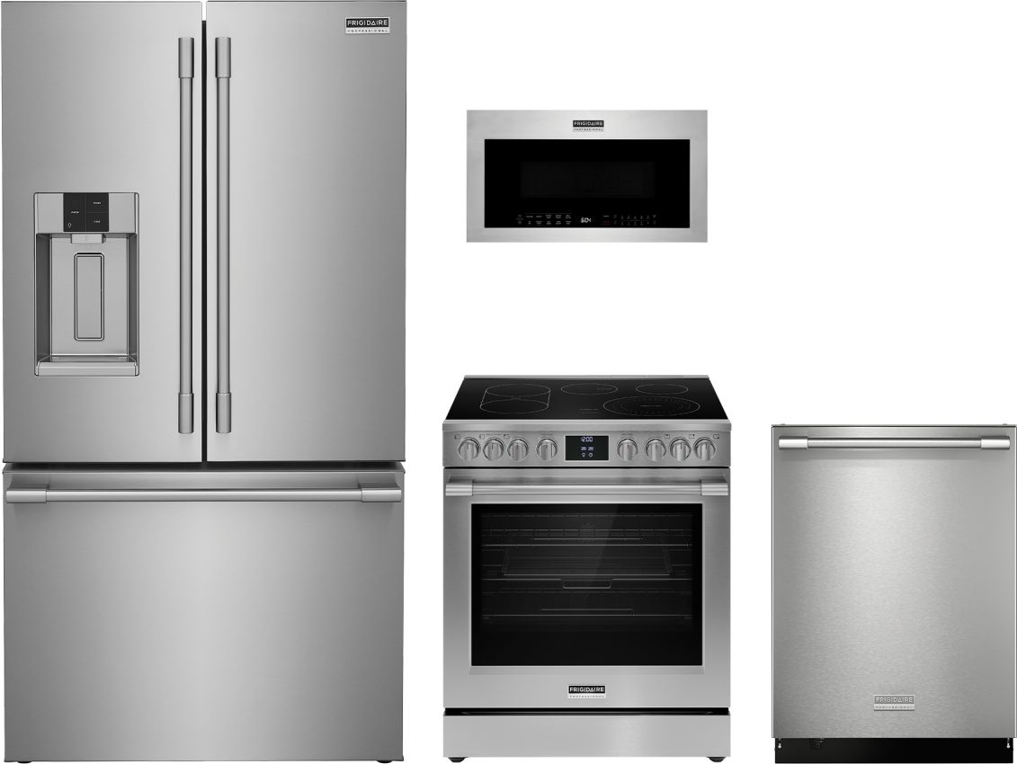 Frigidaire Professional® 4 Piece Stainless Steel Kitchen Package with a French Door Refrigerator, Freestanding Electric Range, Built In Dishwasher, and Over The Range Microwave.Read More
