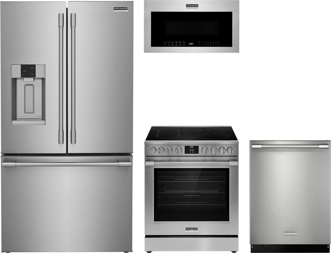 Frigidaire Professional® 4 Piece Stainless Steel Kitchen Package with a French Door Refrigerator, Freestanding Electric Range, Built In Dishwasher, and Over The Range Microwave.Read More